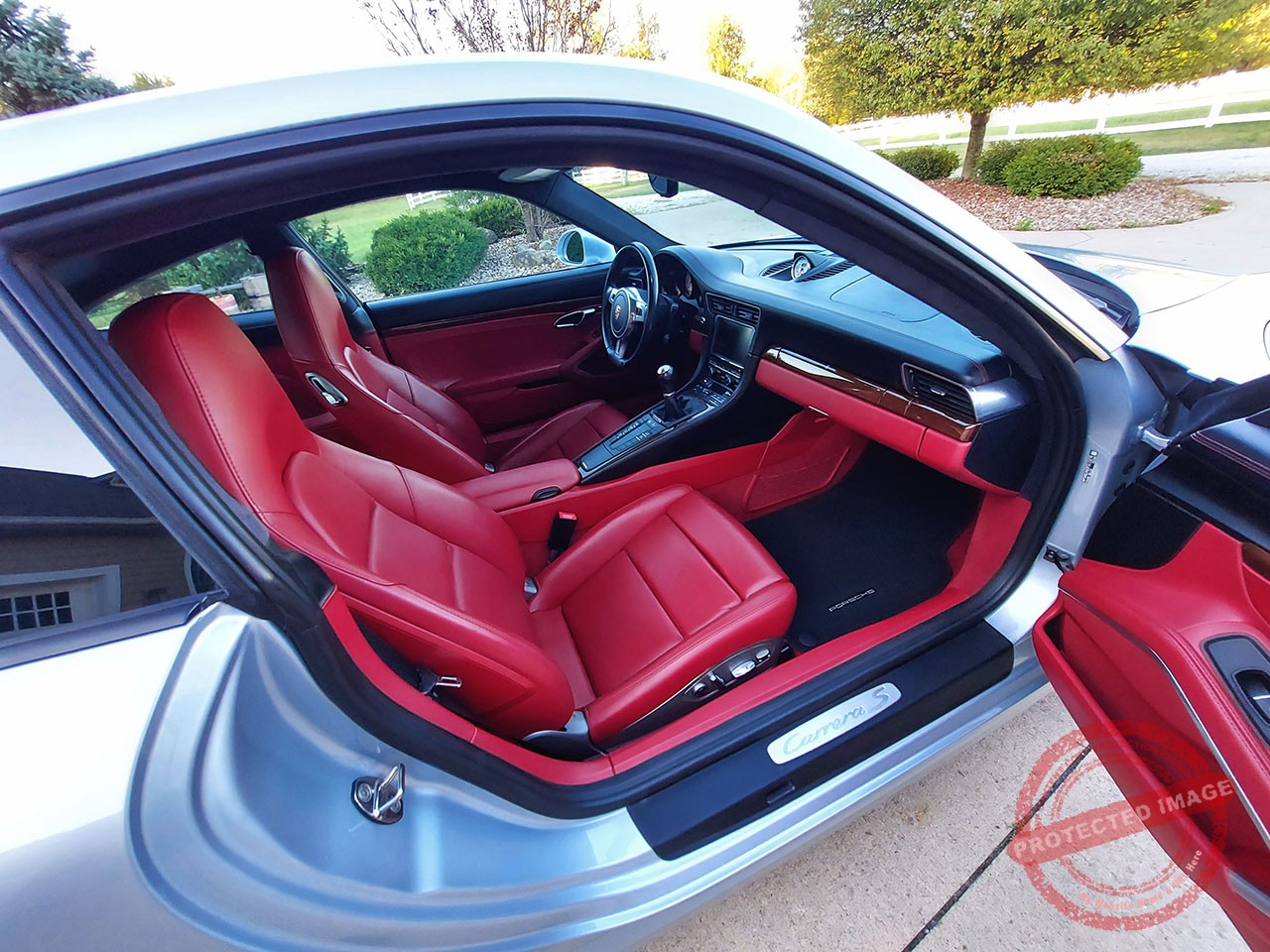 Uber Cool 2015 Porsche 991.1 911 Carrera S Coupe, with Rare 7-Speed Manual Transmission. Finished in superb Rhodium Silver Metallic over a Garnet Red/Black Full Leather Interior. Options include PASM (Porsche Active Suspension Management), Sport Chrono & 20″ Sport Techo Wheels. With just one California owner who added a modest 27k miles this 991 is in superb condition. The vehicle has strong documented maintenance history, and all factory recommended maintenance will be up to date at delivery. It also benefits from new Michelin Pilot Sport 4S Tires. The new owner will receive 2 keys, a full set of owner’s manuals, and maintenance records.